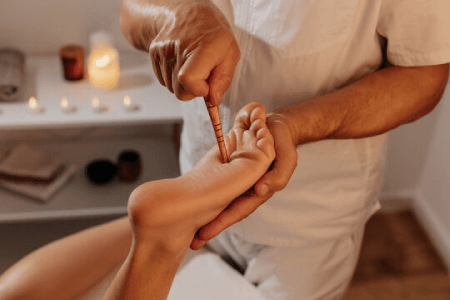Reflexology is a systematic practice in which applying some pressure to any particular point on the feet and hands gives an impact on the health of related parts of the body. This system used to improve patient’s emotional, physiological, and spiritual health.